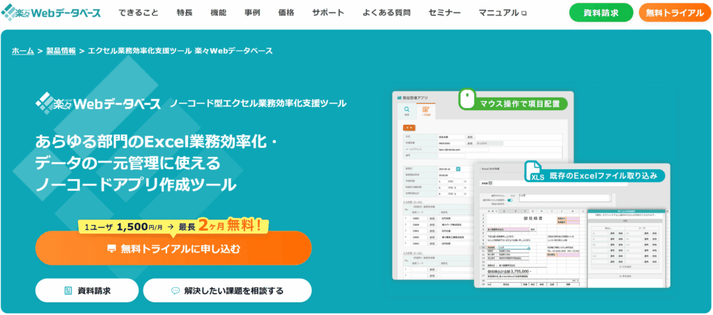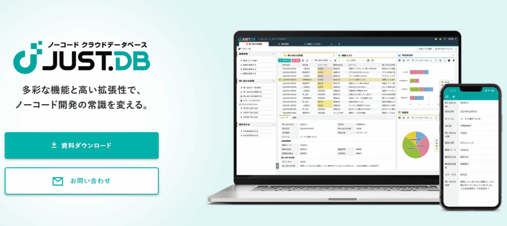 こうした課題を踏まえると、データの一元管理にはWebデータベース型のツールが適しています。Webデータベースであれば、業務内容に合わせて管理項目や構成を柔軟に設計でき、現場主導での運用が可能です。