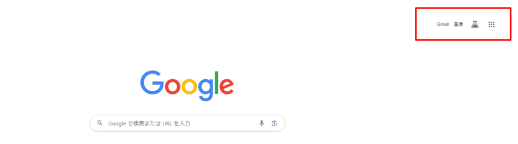 1.Google検索画面の右上に表示されているフラスコのマークを押します。