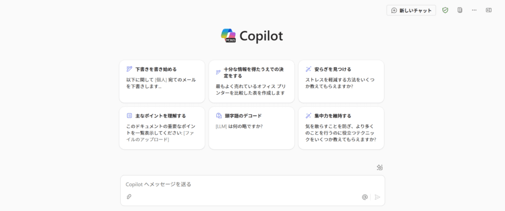 現在、Microsoft 365 Copilot の試用版は提供されていないため、Copilot無料版として「Microsoft 365 Copilot Chat」がお試しいただけます。