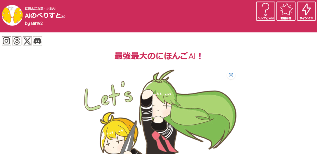 AIのべりすとは、2テラバイト以上のデータベースからフルスクラッチで訓練された小説AIです。最大23,000字程度を入力でき、インプットした文章を参考にした文体の文章を生成してくれます。また、意に沿わないアウトプットデータを編集すれば、その内容も学習して生成文章を調整してくれます。