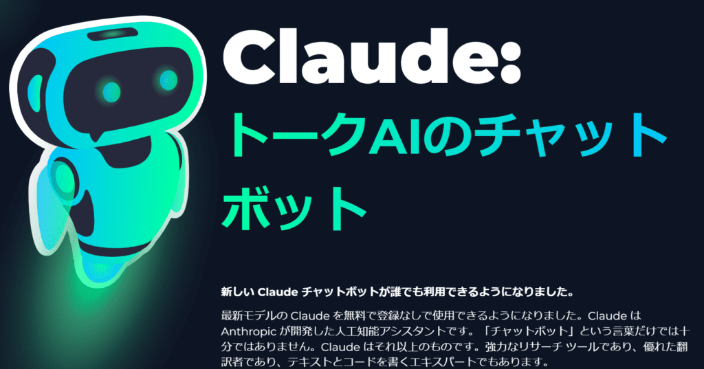 Claudeは、リサーチや翻訳、テキスト・コード生成が可能なチャットボットです。登録不要かつ無料で利用できます。背景の文脈や暗示的な意味も考慮しながら文章を解釈する能力が高いため、思い通りの文章生成が期待できます。