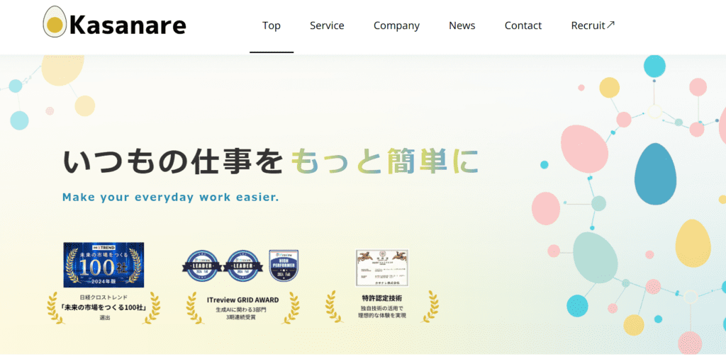 Kasanareは、企業ごとの課題や業務フローに合わせて生成AIを最適にカスタマイズできるツールです。セキュリティ強化や多言語対応、データ最適化など、さまざまな要素をカスタマイズ可能なため、自社用の文章生成AIを構築できるでしょう。