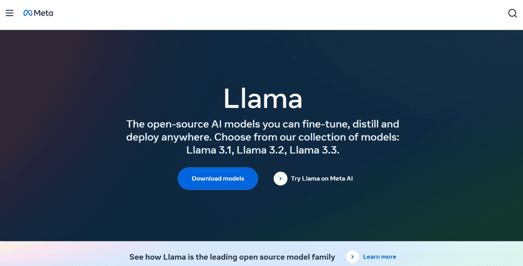 Llamaは、FacebookやInstagramを運営するMetaが、AIの研究サポートを目的に開発した大規模言語モデル(LLM)です。処理能力が高く商用利用も可能です。