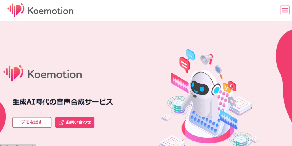 Koemotionは、多様な話し手の声色を感情豊かに音声合成することができるサービスです。また、合成音声に合わせた表情をする3D・2Dのフェイスモーションも生成できます。