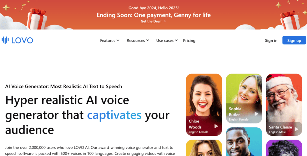 Lovo.aiは、人間らしい話し方ができるツールです。元音声のアクセントやニュアンスを保ったまま、ボイスチェンジもできます。また、音声生成は多言語対応しているため、さまざまな国・地域向けのコンテンツ制作などで利用可能です。