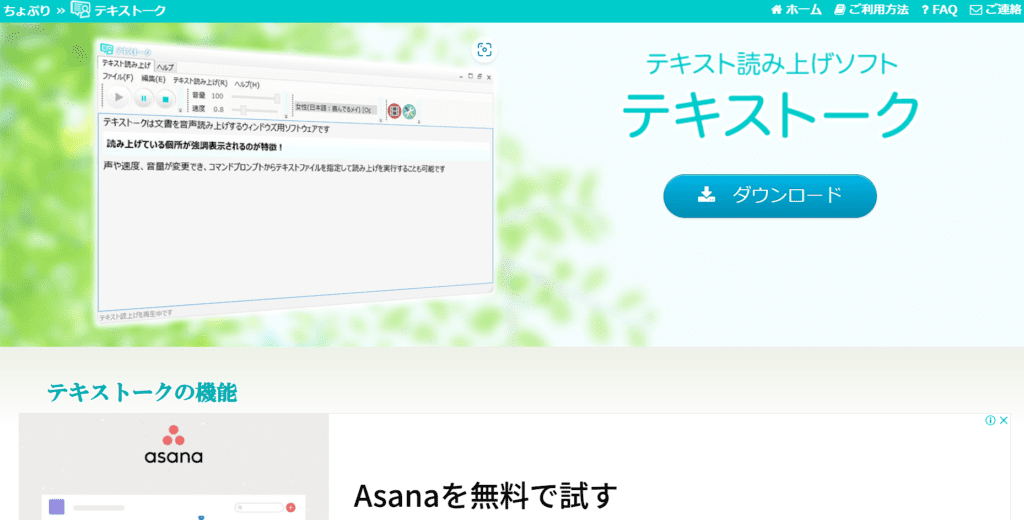 SoftTalkは、漢字や英語を含む文章を多彩な声で読み上げるソフトです。無料で利用でき、シンプルな画面を採用しているため、活用しやすいでしょう。FAQも充実しており、不明点に対する解決策を簡単に検索できます。