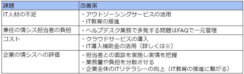 中小企業の情報システムは様々な課題を抱えていることは前述した通りです。では、具体的にどのように改善すればいいのか、改善策を紹介します。