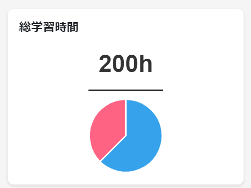 今回は、円グラフを使って目標時間と総学習時間を表示しています。