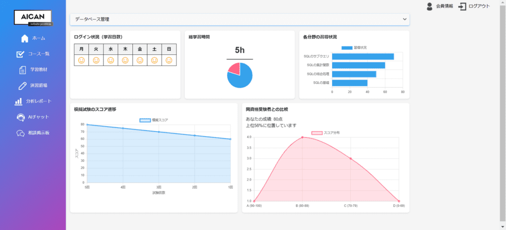 今回作成したいのは、こんなダッシュボード画面です。ユーザーがコースを選択することで、自分の学習状況を一目で確認できるようにすることを目指しています。