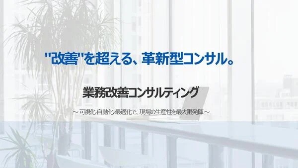 可視化や自動化など6つのサービスを紹介した業務改善コンサルティング資料です。
