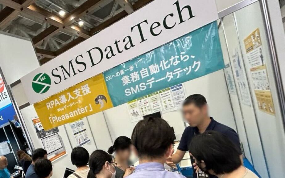 展示上部にあるSMSデータテックの下の、「業務自動化ならSMSデータテック」や「RPA導入支援」という文字を見て、お立ち寄りくださるお客様が多かったです。