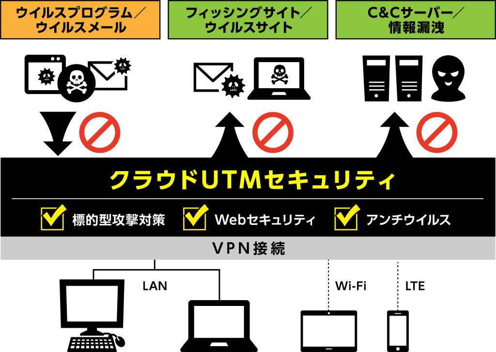 働く場所を選ばず、通信を守るクラウドUTMサービス